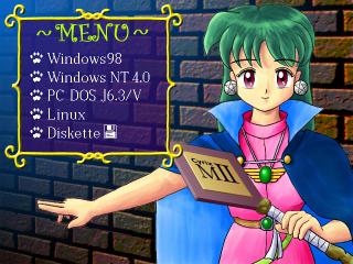 パーティションの選択方法は、メニューをカーソルキーで選べるタイプだ。メニューの表示パーティション、表示ラベルもカスタマイズでき、更には後述するようにグラフィックメニューもオプションで導入できるので、大変グッドである。更にこの場合PS/2マウスも使えるので全く申し分ない。