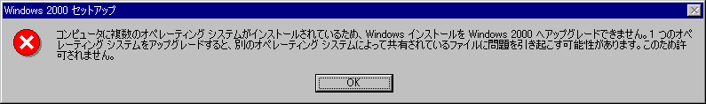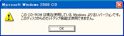 しかしこれも上位バージョンの場合のみである。例えばプレインストールされたOSがWindows XPである場合、このOS上からWindows 2000などの下位バージョンのOSをインストールしようとすると以下のようなダイアログが出てインストールできない。