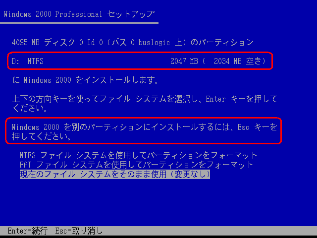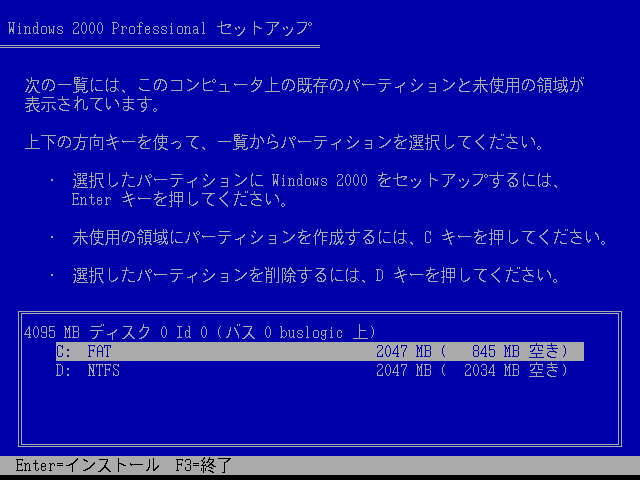 4. ターゲットマシンにてWindows 2000のセットアップ開始