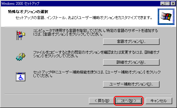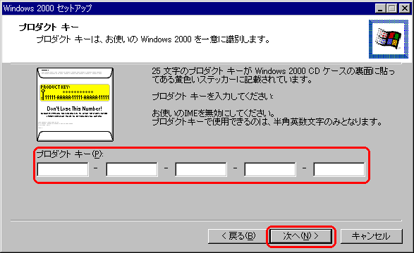 用意した環境準備マシンでWindows 2000のセットアップを途中まで行う。セットアップはWindows上からインストールCD内にあるセットアッププログラムを実行して行う。決してCD-ROMブートなどを行って初期インストールする時のような方法で行わないでほしい。