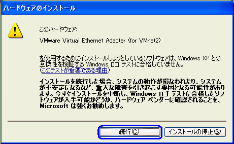これはドライバのインストールの時に見たことがある方も多いだろう。文章を読むと恐ろしい感じを受けてしまうかもしれないが気にすることはない。無視して「続行」しよう。