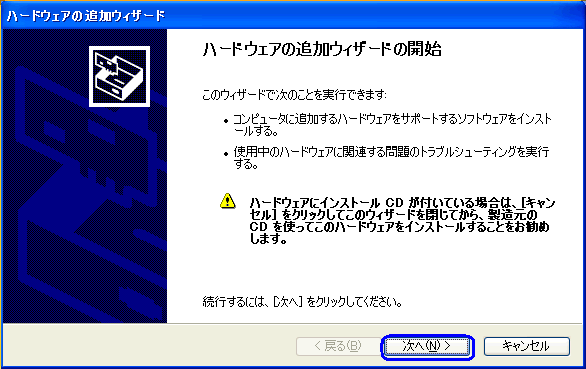ハードウェアの追加アイコンをダブルクリックすると早速次のような開始画面が表示される。