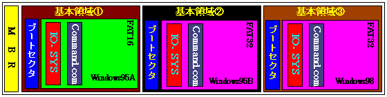 [Windows9xマルチの基本パーティション構成イメージ]