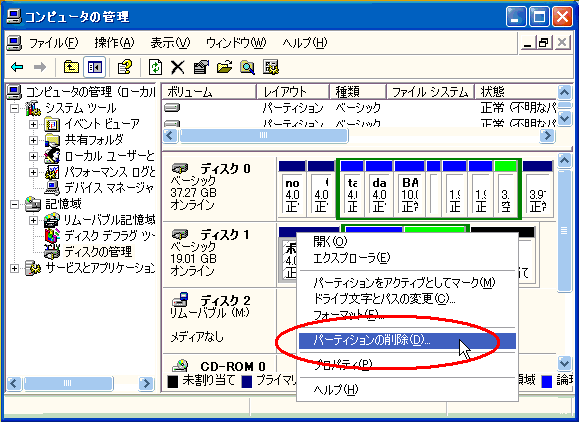 パーティションの削除(ディスクの管理の使い方)
