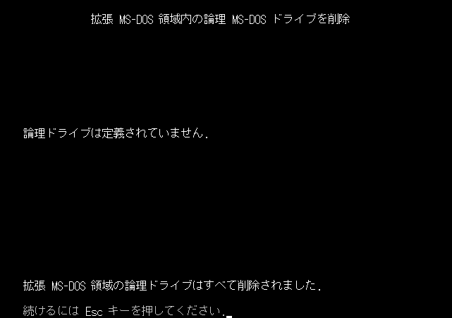 これで拡張領域の削除は完了になり、作業を続行するため、「Esc」を押下する。