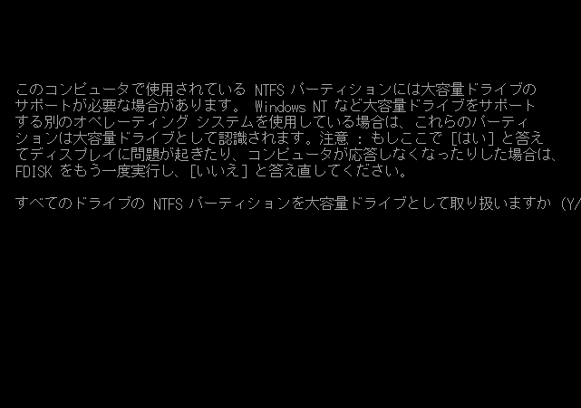 因みにハードディスクにNTFSでフォーマットされた領域をFDISKが見つけると、このような意味不明のメッセージを出する。意味はよくわからない。調査中だ。