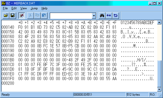 ただ値によっては、それっぽい数値が入っている場合もあります。たとえば第2パーティションエントリのセクター値は63という、如何にもそれらしい数値が入っていますし、開始位置(LBA値)も少しずれているだけです。アナログな世界と違って、デジタルな世界では、ちょっと違うということはあまり起こらないはずなんです。
