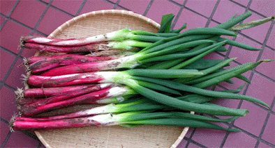 In Nakagawa of Ibaragi-ken (prefecture), an unusual vegetable called aka-negi, only grown in the area can be found. Negi is green onion or scallion, or depending on different countries it is referred to as shallot or spring onion. However this green onion is reddish purple on the bottom part of its stem thus called aka(red) negi. Because the aka-negi is deep rooted in soil, it adopts its splendid dark red color in the long stalks by earthing up during growth. For a while, because the farmers were trying to grow aka-negi as a vegetable only made in their region, they never developed any hybrids outside and they never forgot to cut its roots before shipping them out. However, they have found out that there really was no need to do so, since grown in other regions, aka-negi will not adopt the color red, but will only turn out white and blanched like all the other negi. Believe it or not, the richness that the soil contains gives the vegetable its unique color of red.