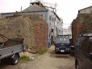 | 尼崎駅があった部分のすぐ南の路盤。 | 左の写真の反対側の裏。すでに取り壊しが始まっていました。 |
