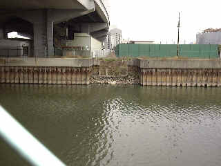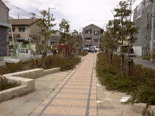 | 終点の尼崎港駅からさらに先、工場への引込み線があったようです。これは鉄橋があった跡のようです。 | その引込み線跡は遊歩道に整備されていました。 |