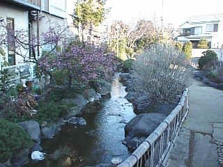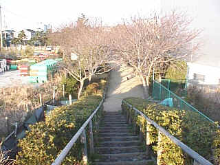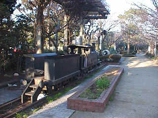 | 沼津港線の分岐部分、蛇松線の終点にはミニSLとSLの動輪(写真中央やや右)が置かれています。 | 左の公園を川の土手から眺める。 |