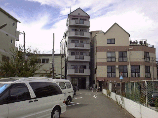 | 中央のマンションの幅が線路跡の幅。廃線好きなら住んでみたいマンションですね。 | 専用線が分岐していた跡地。わかるかな。写真左奥と右奥に別れていたようです。 |