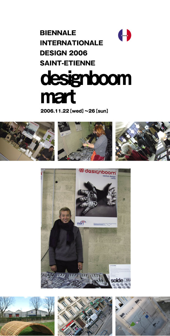 第5回サンテチエンヌ国際デザインビエンナーレ(The 5th Biennale Internationale Design)が11月22日から12月3日まで開催されました。 22日から26日まで行われたdesignboom martに出展。現地フランスの方々をはじめ、多くの外国人の方々にふれあい、興味を持っていただき、好評をいただきました。 東京に引き続き大成功に終わり、フランスを後にしました。