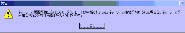 これで終わりです。後はただ待つのみ。ですが、不幸は再度訪れるものでして55%DLした所から、全くファイルのDLが進まなくなり仕舞には下のような表示が出る始末。正直この時点でNetscapeがちょっと嫌になってきましたが、ここでコンテンツを修了する訳にも行かないので気合でDLする事に。