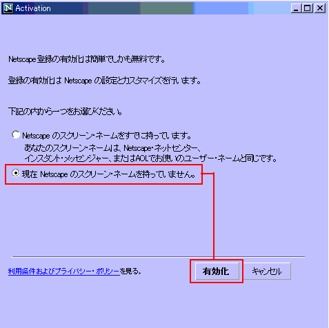 つまりは有効化する事による特典は、Netscape Instant Messenger(インスタント メッセンジャー)が無償で使えるようになるらしく、既にMSNメッセンジャーなどのサービスを使用している方に、有効化する必要性は無いと思われます。