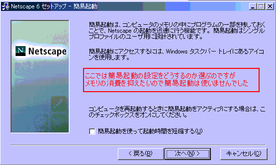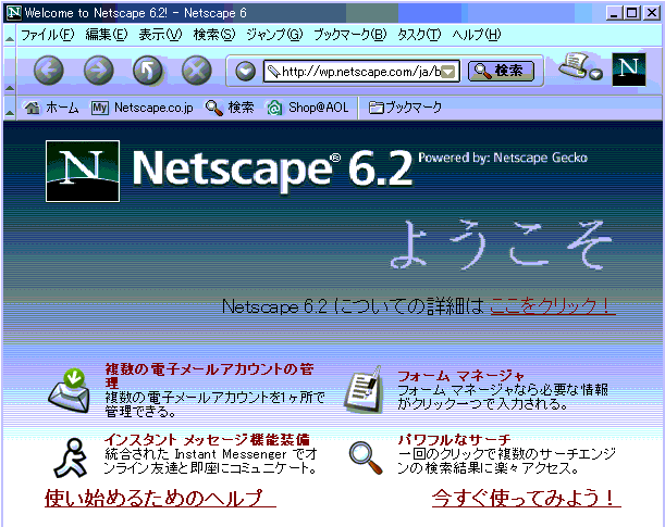 こんな画像から始まりましたが、ネットスケープのインストールが完了すると出てくる画面がこれです。プラウザのほかに