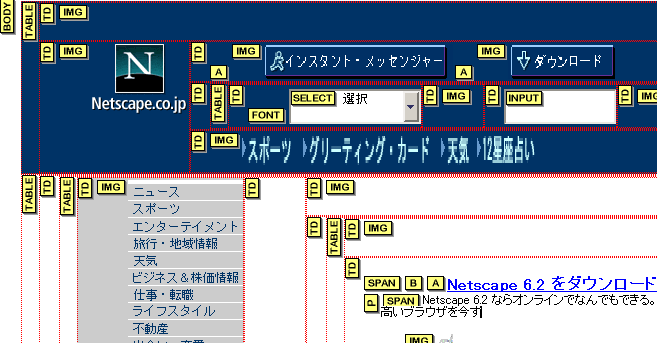 | 第二印象 | 「ネットスケープでは表示が崩れる」などの噂を良く耳にしたが、実際はそうでもなく、大抵のサイトはIEと同じ表示をしてくれた。 |