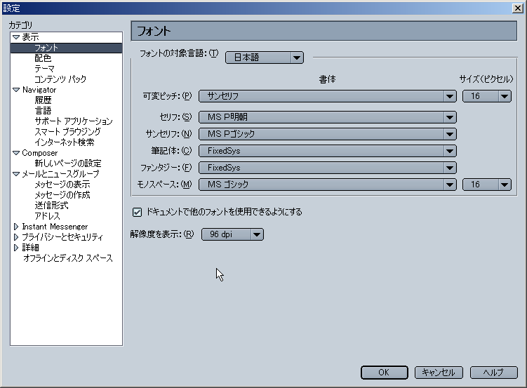 次は「設定」の説明です。とはいっても見かけはIEとは異なりますが、設定する内容自体はIEと同じと考えて差し支えはありません。ちなみに下にあるのが設定画面です。私が思ったのは、IEに比べて設定をいじるのが簡単に感じました。またこれは個人的感想ですが、デザインが私好みです。別にどうでも良いことなのですが、ずっと使い続けるとなると、結構重要な項目だと思いますし、どのアプリを使うかな?と悩んだときにはデザインなどが大きいウェイトを占めますので、こういう点ではNetscapeが一歩リードといった所でしょう。なお設定に関しての説明は省略します。