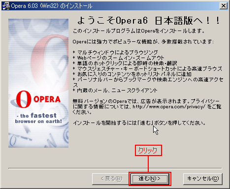 これで3M程度のファイルがDLできたと思います。次にDLしたファイルを実行すればインストールが始まります。基本的には「進む」を押せばインストールは完了するので、そう難しい作業でもないでしょう。