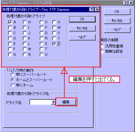 また「処理対象から省くドライブ名」というのがあるのに気がついたでしょうか?メディアの存在確認の為に動作によってパフォーマンスが低下するのを防ぐ為のもので、フロッピーディスクドライブやCD-ROMドライブなどの間違い無くサーバーを建てた際に使わないドライブが当てはまります。下の画像を参考に必要無いドライブにチェックを入れてください。