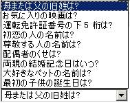 秘密の質問選択画面