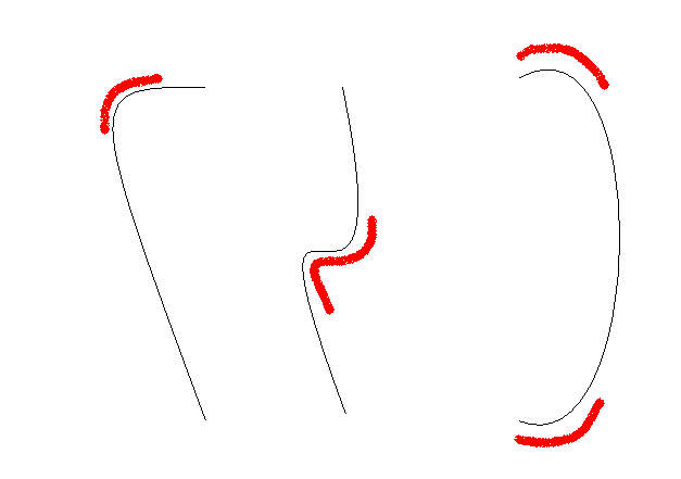 上では「ハンドファイルを使え」としつこく書きましたが、ここでは逆に「素手でペーパーを持つ」と矛盾した答えを書かせてもらいます。理由としてはご想像の通り「曲線にハンドファイルを当てると、角を削りすぎてしまう」からです。ある程度大きい角度を持つ曲線は、手でペーパーを当てましょう。