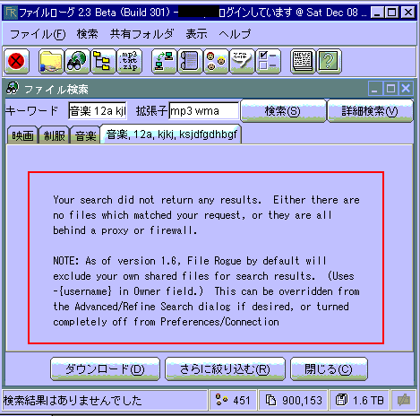 「あなたの探索した結果は出ませんでした。 あなたのリクエストと一致したファイルはありません。あるいは、それらは代理かファイアウォールの後ろにすべてあります。 」