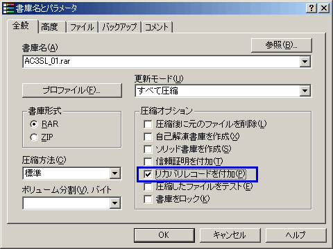 □リカバリレコードが付属されている圧縮ファイルを作成する