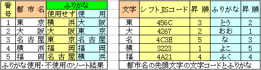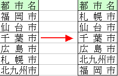 下図は、都市名をユーザー設定リスト登録順に並び替えた結果です。 | |