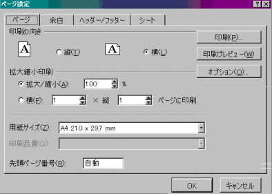 設定(S) | 「ページ設定」ダイアログボックスを表示します。 |