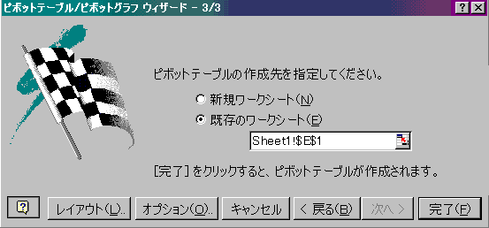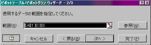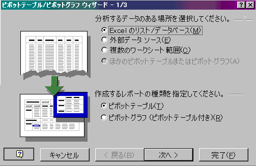 複数のワークシート範囲(C) | 複数のExcelワークシートからピボットテーブルレポートまたはピボットグラフレポートを作成します。 | |