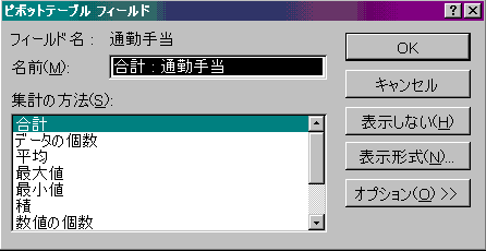 データ(D) | データエリア。集計項目データをここへドラッグして、集計方法を指定する。 |