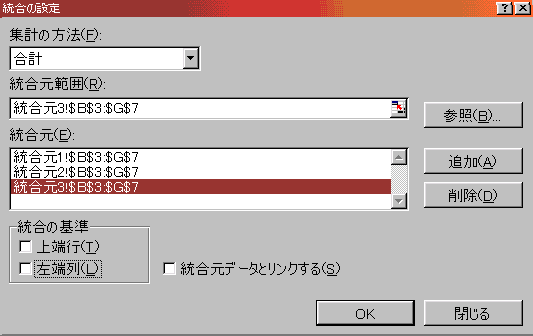 また、統合元範囲の列見出しや行見出しは統合先範囲にコピーされませんので統合先ワークシートに見だしを表示するには、統合元シートのいずれかから見だしを複写するか、入力する必要があります。