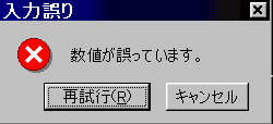」を入力したもので、右上図が誤った数値を入力したときの表示内容です。 |