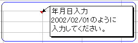 入力規則が設定されているセルの上にマウスがポイントされたときに、右図のようにメッセージを表示して、入力時の注意事項や入力できる値の範囲を表示することもできます。 |