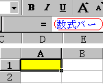 データの入力は、セルまたは数式バーで行います。左図上が数式バー、左図下がセルです。 | |