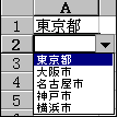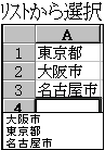 ショートカットメニューの「リストから選択(K)」は、入力セルと同じ列に入力されている文字の中から、異なる文字列のみをリストとして表示し、入力文字列に該当する文字列をクリックするだけで入力できる機能です。 既入力セル下の空白セルで右クリックしてショートカットメニューを呼び出し、「リストから選択(K)」を選択すると、左図のようなリストが表示されますので、該当する文字列をクリックします。 |