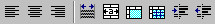 上図は、Excel のツールバーの一部です。 各ツールバーの機能は、左のアイコンから順に「左詰め」「中央揃え」「右詰め」「均等割り付け」「セルを結合して中央揃え」「セルの結合」「セル結合の解除」「インデント」「インデント解除」です。 なお、これは筆者のパソコン画面のものですので、ツールバーの表示状態はそれぞれの設定結果により異なります。 ツールバーによる文字の配置指定は、配置を設定するセルまたはセル範囲を選択して、配置内容に応じてツールバーのアイコンをクリックします。 |