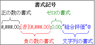 書式記号(左図)は、「正の数」、「負の数」、「ゼロ」、「文字列」の