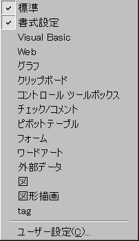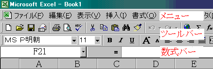 数式バー(F) | 数式バーを表示します。数式バーはシートの上端に表示されます |