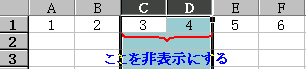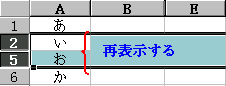 行の非表示・・・2 行目と3 行目を非表示にします。右図はその結果です。 | |