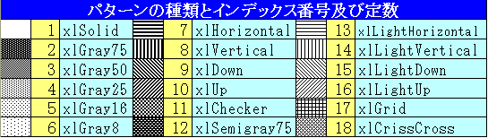 罫線の種類は、下表の組み込み定数を使用して次のように指定します。
