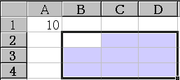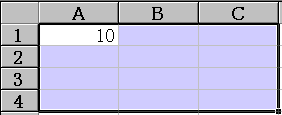 選択範囲「A1:C4」のアクティブセルは選択範囲の左上隅セルだけなので、「A1」に「10」が入力される。 |