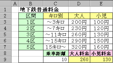 2-@ | $C9<=7 論理式:セル「C9」の値(距離)が 3kmを超え7km まで |