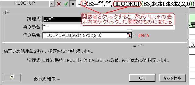 偽の場合 | HLOOKUP(B3,$G$1:$K$2,2,0) | 条件が成立しなかったらHLOOKUP関数の式を実行した結果を計算式入力セルの値とする |