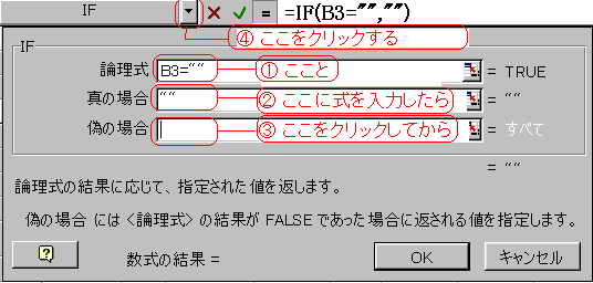 真の場合 | "" | 条件が成立したら計算式入力セルを空白にする |