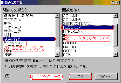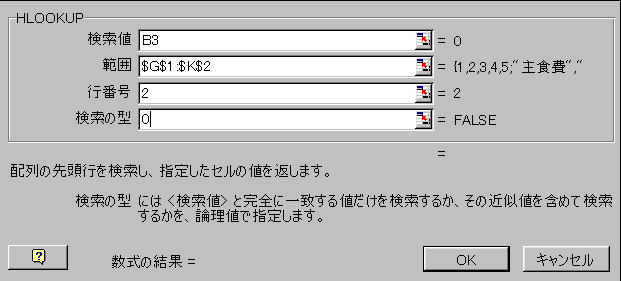 範囲 | $G$1:$K$2 | セル範囲「$G$1:$K$2」の最初の行に検索値と同じ値があるかどうかを調べる |
