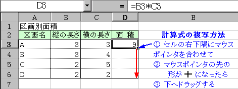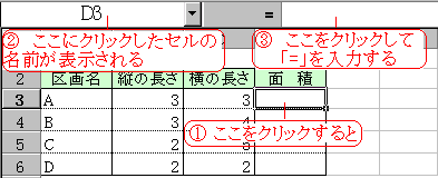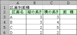 「D3」の面積は、「B3 の値」×「C3