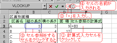 3 セル「B3」をクリックする(数式バーに「B3」が入力される)。