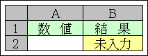 [実例1]:「数値」欄に入力された数値を「結果」欄に表示する。未入力のときは「未入力」のメッセージを表示する。